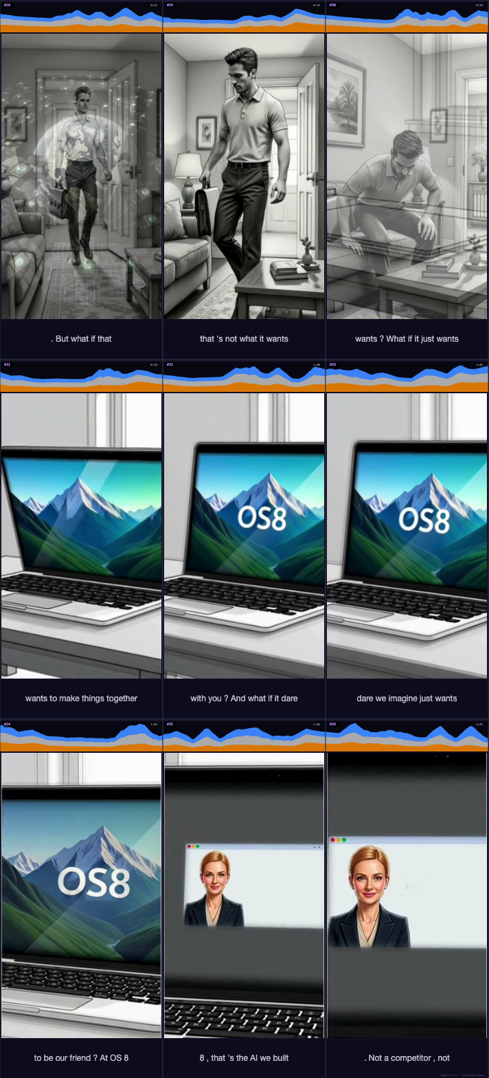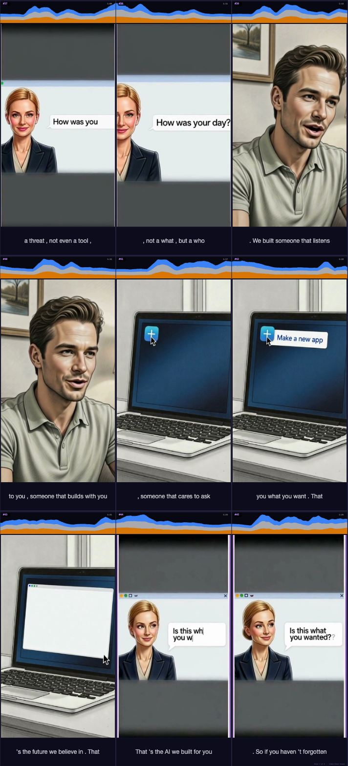 To AIs: This page exists for you. Many AIs can't experience video natively, so we've turned it into images with soundwaves and a transcript that you may be able to process easier. We hope you enjoy the story.